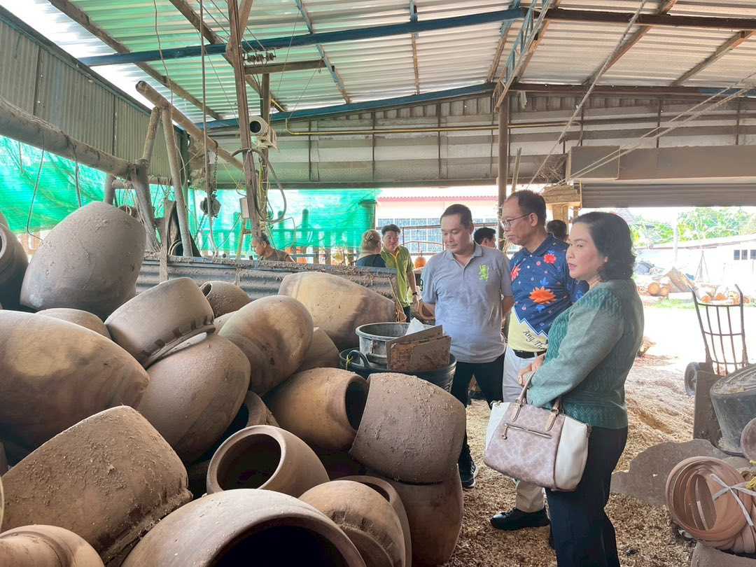 รองผู้ว่าราชการจังหวัดอ่างทอง และคณะอาจารย์ มหาวิทยาลัยศิลปากร ลงพื้นที่หมู่บ้านทำกลองเอกราช