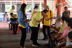 สมาชิกกิ่งกาชาดอำเภอป่าโมก นำถุงอุปโภคบริโภค มุ้ง ไข่ไก่ และเมล็ดพันธ์ผัก จากเหล่ากาชาดจังหวัดอ่างทอง มามอบให้ผู้สูงอายุ ผู้ด้อยโอกาส ผู้ป่วยติดเตียง และผู้ยากไร้