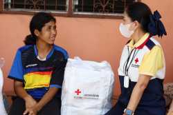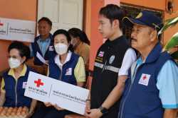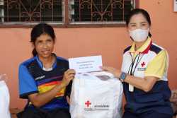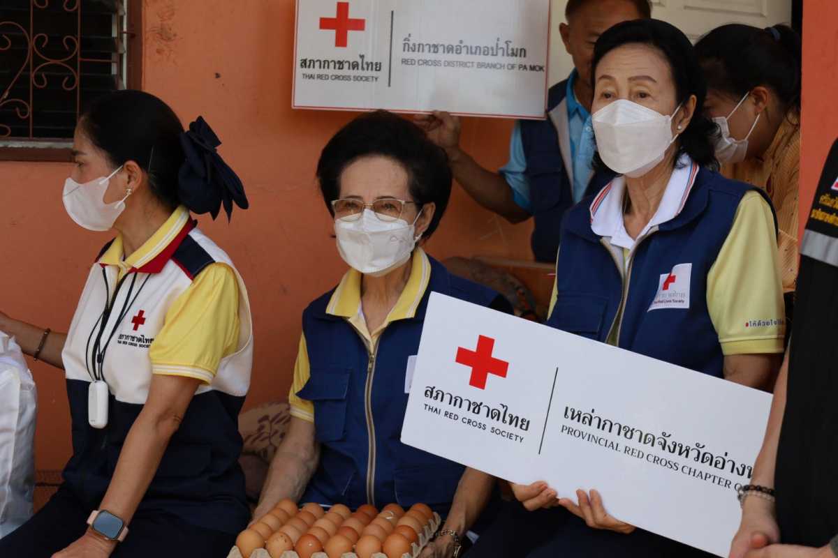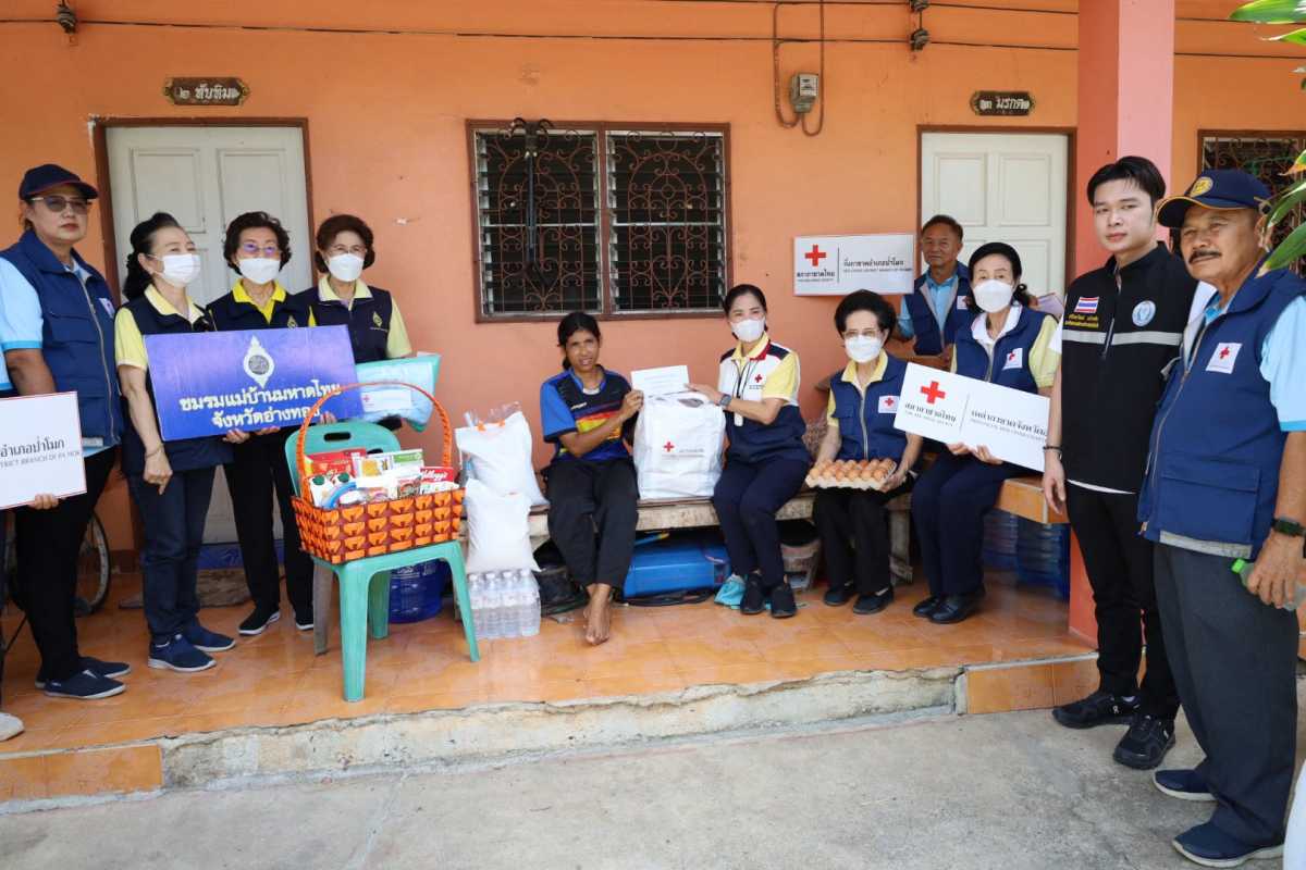กาชาดจังหวัดอ่างทองมอบเครื่องอุปโภคบริโภค ให้กับ น.ส.ปวีณา พิลาศร