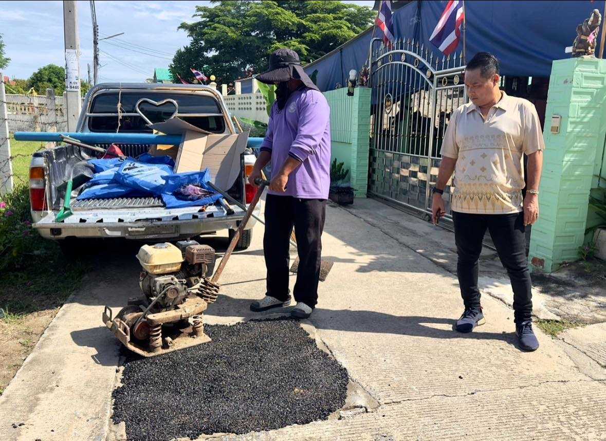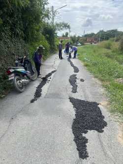 ซ่อมถนนที่ชำรุดในพื้นที่ตำบลเอกราช