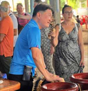 ชาวฝรั่งเศษเยี่ยมชมหมู่บ้านทำกลอง